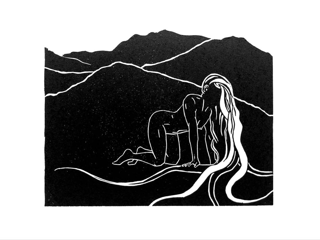 “In her natural habitat” – linocut in several layers